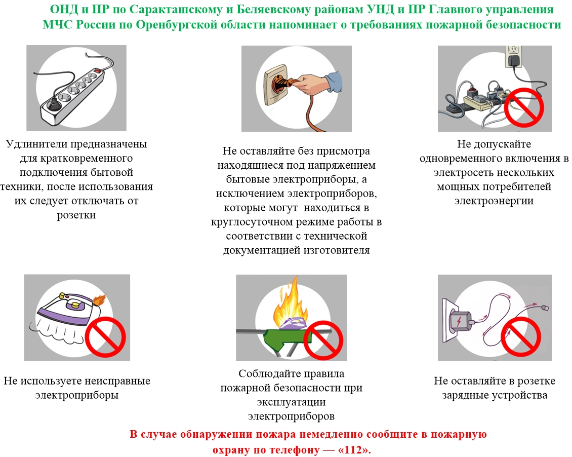 Отдел надзорной деятельности и профилактической работы по Саракташскому и Беляевскому районам УНД и ПР Главного управления МЧС России по Оренбургской области напоминает о требованиях пожарной безопасности:
